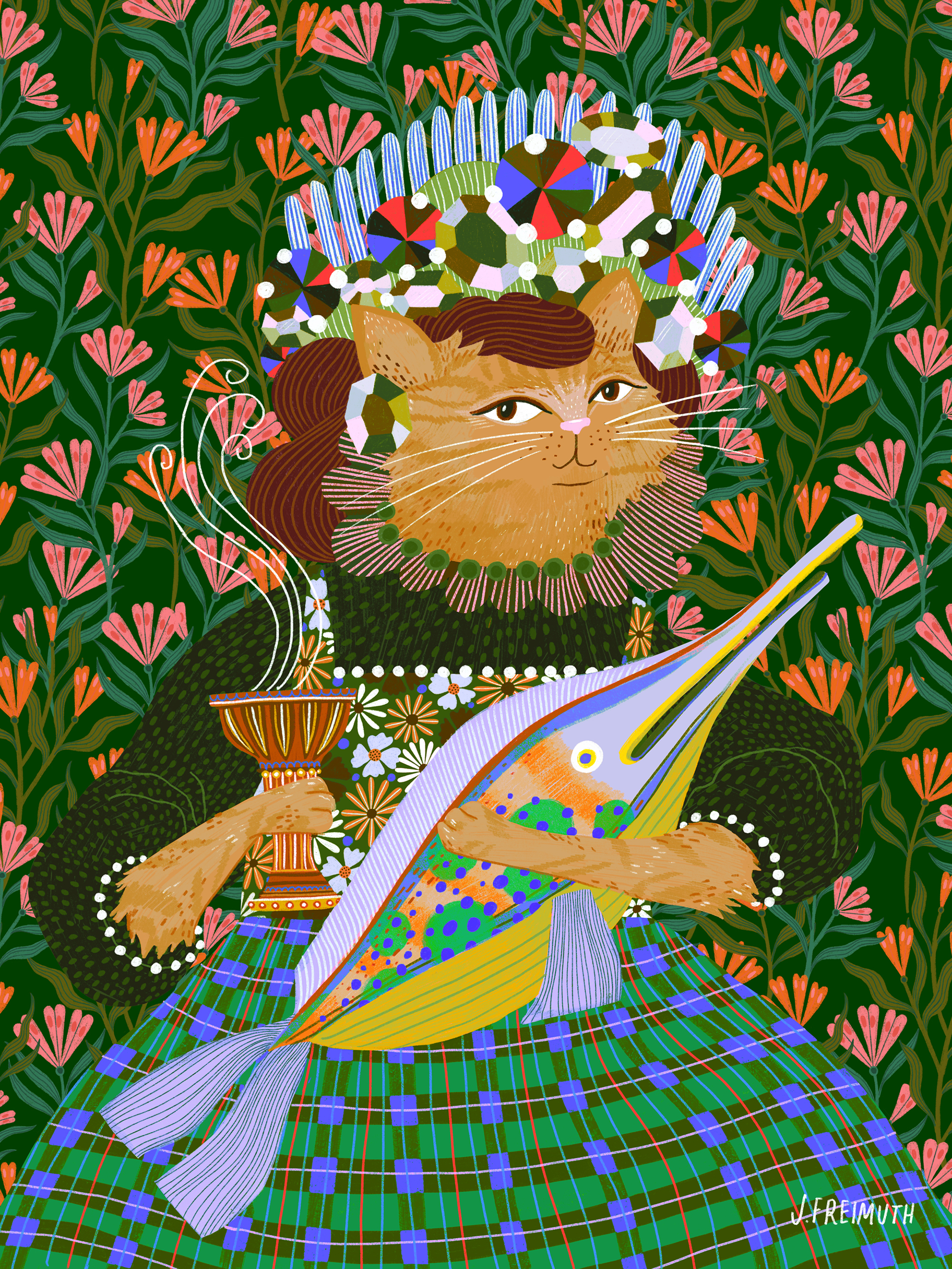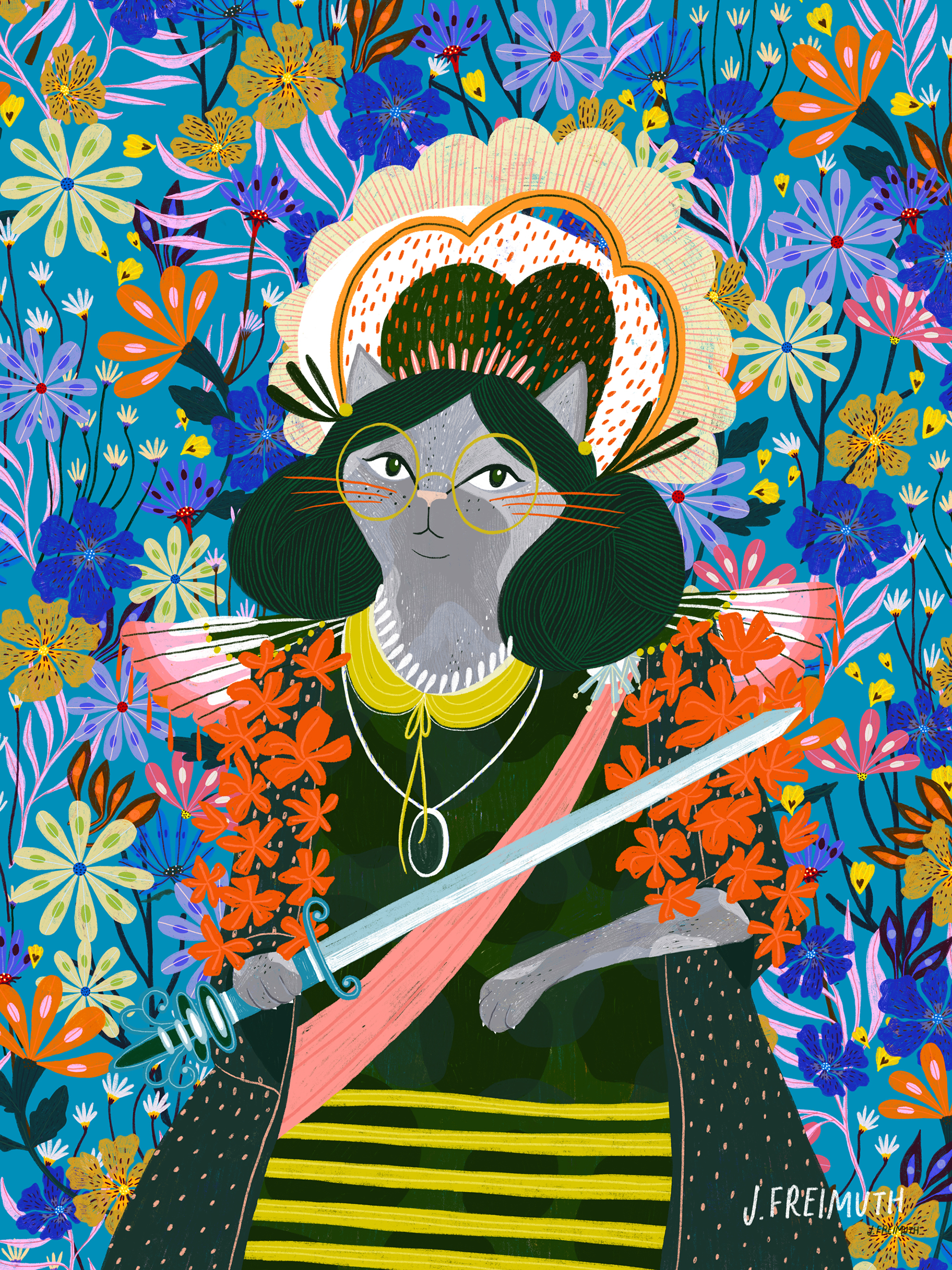 An imaginative portrait series of Cat Ladies exploring treasured possessions, elaborate hairstyles, and the natural nobility of our feline friends.